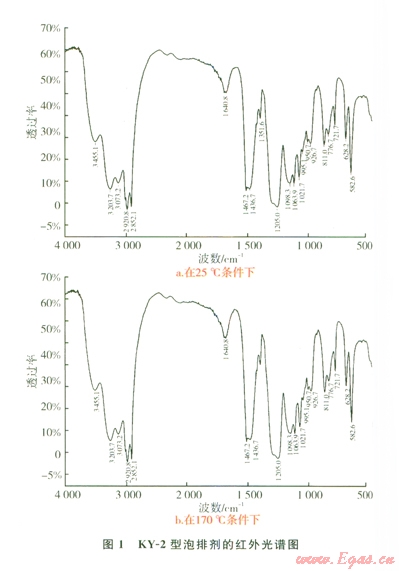 核磁共振和紅外光譜能很好地反映出泡排劑的分子結(jié)構(gòu),同時(shí)還可以由核磁譜圖和紅外譜圖分析出泡排劑所含的基本官能團(tuán),通過(guò)這些基本官能團(tuán)推測(cè)泡排劑在