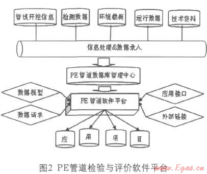 軟件平臺是IT技術(shù)在PE管道檢驗與評價中的應(yīng)用?;跀?shù)據(jù)庫技術(shù)構(gòu)建PE管道信息數(shù)據(jù)庫,有效管理PE管道數(shù)據(jù),從而實現(xiàn)管道信息共享,并利用信息數(shù)據(jù)庫編制PE管道風(fēng)險評估系統(tǒng),構(gòu)建以風(fēng)險檢驗為核心的PE燃?xì)夤艿腊踩u價軟件應(yīng)用平臺。PE管道檢驗與評價軟件平臺如圖2所示。