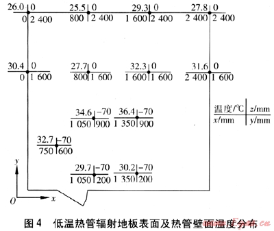 ② 低溫?zé)峁茌椛涞匕灞砻鏈囟确植际軣峁鼙诿鏈囟确植嫉挠绊?,地板中部溫度高、兩端溫度低的溫度梯度有利于減小地板由邊緣向外部的熱損失。