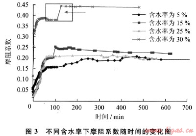 為了使天然氣水合物顆??梢愿玫胤稚⒃谔烊粴馑衔餄{液中并隨之一起流動(dòng),防止其聚集阻塞管道,分別向4種不同含水率的水一柴油乳狀液中加入了劑量不等的阻聚劑,由于流動(dòng)屬于層流范圍。因此運(yùn)用達(dá)西公式可以計(jì)算出每一時(shí)刻的摩阻,為:
