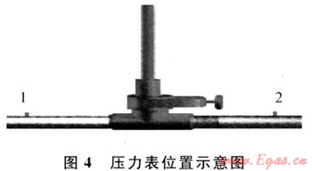 具體試驗(yàn)步驟:選擇空曠場(chǎng)地,搭建試驗(yàn)平臺(tái);剝防腐層,除去管線表面油污、底漆;測(cè)量管線橢圓度,保證封堵點(diǎn)位置橢圓度不超過(guò)1%;測(cè)量管線壁厚,盡量避開(kāi)嚴(yán)重腐蝕區(qū)域;選擇合適點(diǎn),焊接封堵三通、注氮短節(jié)、平衡短節(jié)以及管線封頭;對(duì)焊道進(jìn)行滲透探傷檢查;安裝夾板閥、球閥,壓力表位置安裝示意圖見(jiàn)圖4,從口2注入氮?dú)猓瑝毫?.0MPa;安裝1200H開(kāi)孔機(jī)和T101型開(kāi)孔機(jī),開(kāi)DN600mm封堵孔和2號(hào)平衡孔;調(diào)試、安裝封堵器,進(jìn)行封堵操作,封堵操作時(shí)先壓力平衡后方可進(jìn)行下一步的操作;經(jīng)測(cè)量和計(jì)算,封堵尺寸下到位后,打開(kāi)2號(hào)球閥放空氣體;使用火焰切割設(shè)備,切開(kāi)2號(hào)球閥一側(cè)封頭,向管道內(nèi)安裝氣囊并給氣囊充氣;觀察1號(hào)位置處短節(jié)上的壓力表看壓力是否變化,用肥皂水噴氣囊貼管內(nèi)壁處,若壓力表無(wú)變化,氣囊貼管壁處無(wú)氣泡則封堵成功,否則封堵視為不成功,此時(shí)應(yīng)分析封堵不成功的原因,并有針對(duì)性地提出解決問(wèn)題的措施,直到封堵成功為止。封堵試驗(yàn)完成后,對(duì)1號(hào)位置處進(jìn)行泄壓;拆卸封堵設(shè)備和焊接在試驗(yàn)管道上的三通等機(jī)具、器材,并將它們擺放就位。
