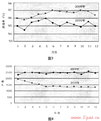 通過對推行一抄一報(bào)抄表模式一年來抄表率的分析,我們發(fā)現(xiàn)通過“報(bào)”實(shí)現(xiàn)了抄表率的提升,難抄戶大大減少,公司的氣款回收率也得到提升。圖3和圖4分別是我司2009/2010年抄表率和難抄戶變化對比圖。