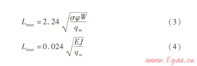 按強度條件計算,Lmax=19.95m;按剛度條件計算,Lmax=44.06m。