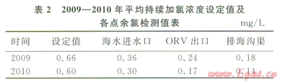 2)海水余氯濃度處于設備長期運行所能承受的范圍內。