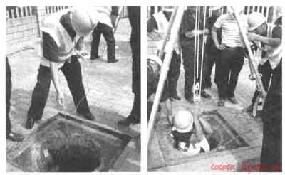 4) 密閉場地外的現(xiàn)場要配備合適的起重設備,例如設有吊重裝置的三腳架,配合救生繩及安全帶作救援之用;