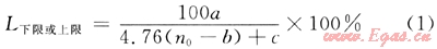 式中L下限或上限為單組分氣體的爆炸下限或上限;n0為每摩爾有機可燃性氣體完全燃燒時所必需氧原子的物質(zhì)的量;當(dāng)計算爆炸下限時,a=b=c=1;當(dāng)計算爆炸上限時,a=c=4,b=0。