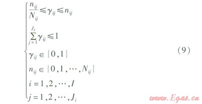 式中Nij——第i種,型號(hào)設(shè)備最多可選臺(tái)數(shù)