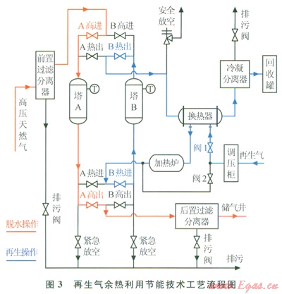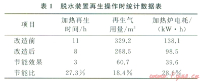 1)應(yīng)用再生氣余熱利用的節(jié)能技術(shù)提高了加熱爐的進(jìn)氣溫度,減少了加熱時(shí)間和電耗量,降低了脫水裝置的能耗,技術(shù)上可行。