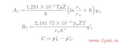 氣井單相滲流的穩(wěn)定二項(xiàng)式產(chǎn)能方程為: