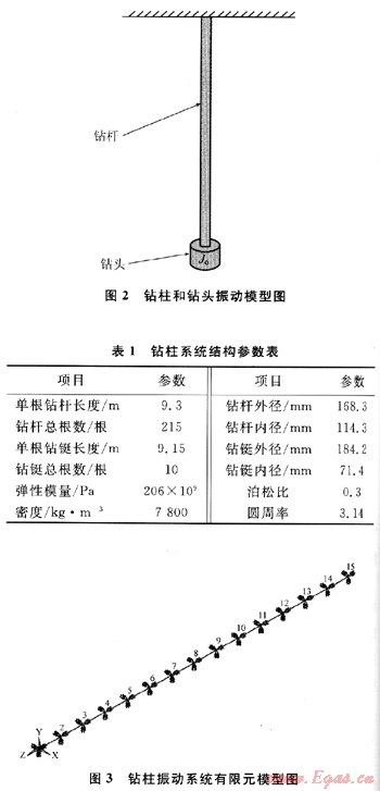 目前國內(nèi)外專家對石油鉆井中鉆桿的失效原因、振動特性等方面的力學機理進行了研究[4~5],而深海大尺寸繩索取心專用鉆柱的受力與工作機理比石油鉆井用鉆柱更為復雜。因此需要全面深入的綜合研究。筆者主要結(jié)合當前國內(nèi)外振動理論方面的研究成果,從深海天然氣水合物鉆探取心的實際情況出發(fā),對鉆柱的振動進行模態(tài)分析,從理論上解決鉆柱的共振問題,以期對深海天然氣水合物的成功取樣提供幫助。