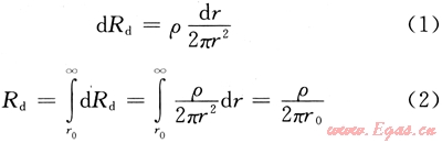 式中dRd為土壤散流電阻;Rd為鉆機(jī)對(duì)地電阻;r0為鉆機(jī)底座與人體接觸處距井口中心的距離;ρ為土壤電阻率;r為人體距井口中心的距離。