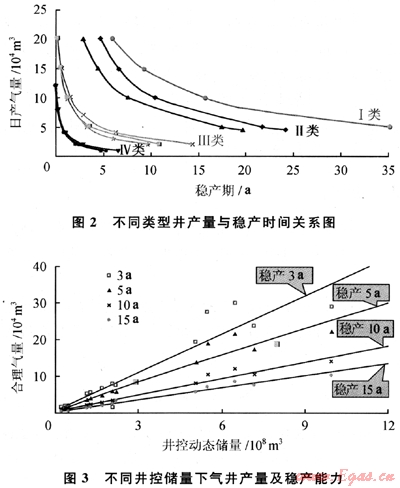 綜合分析徐深氣田試采井的地層系數(shù)、穩(wěn)定產(chǎn)能、單位壓降采氣量等地質(zhì)和動態(tài)特征,對系統(tǒng)試采的井進行了分類評價。綜合單井試采結(jié)果,結(jié)合不穩(wěn)定試井以及數(shù)值試井方法,建立了開發(fā)早期單井合理產(chǎn)量與穩(wěn)產(chǎn)能力關(guān)系圖版,確定氣井初期產(chǎn)能、落實合理產(chǎn)量(圖2、3)。