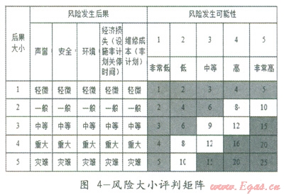 管道的風(fēng)險評價可使用定性、半定量或定量的方法進(jìn)行。設(shè)計(jì)數(shù)據(jù)、管道運(yùn)行數(shù)據(jù)及檢測數(shù)據(jù)等應(yīng)作為評估的基礎(chǔ)數(shù)據(jù)。風(fēng)險評價是進(jìn)行檢測、監(jiān)控和完整性管理的基礎(chǔ)。因此,對管道進(jìn)行風(fēng)險狀況評價后必須進(jìn)行風(fēng)險等級劃分。即完成運(yùn)行期管道風(fēng)險狀況評估后,給出一個風(fēng)險劃分的標(biāo)準(zhǔn),把不同風(fēng)險狀況的管道進(jìn)行歸類。