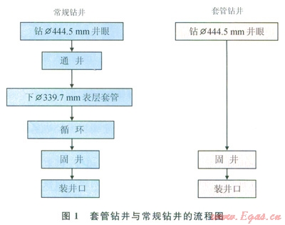 從圖l可以看出,套管鉆井省去了起鉆、通井、循環(huán)和下套管的時(shí)間。
