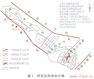 別什旨特坳陷東南部為基薩爾褶皺隆起區(qū),是阿姆河盆地的邊緣造山帶,與阿富汗—塔吉克盆地相接,呈復(fù)式背斜和復(fù)式向斜的構(gòu)造格局。隆起區(qū)具有正地貌特征,其山系海拔介于600~l000m,出露古生代基底,隆起區(qū)向盆地內(nèi)部傾沒部位則與負(fù)向地貌一致,地表出露的地層較新?;_爾隆起區(qū)可以進(jìn)一步分為3個逆掩斷裂背斜帶,即阿克庫姆拉姆高爾達(dá)克構(gòu)造帶、加拉恰加特構(gòu)造帶、庫基坦格構(gòu)造帶。