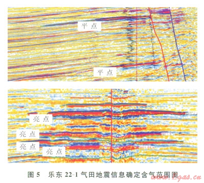 這一評價思路慕于以下幾點認識:①“模糊區(qū)”的形成可能是由淺層氣屏蔽和熱流體造成;②“模糊區(qū)”在時間剖面上的下凹,很可能是速度陷阱造成的假象,可能是構造的高部位;③從沉積相分析,該區(qū)儲層可能是連片分布的,也就是說“模糊區(qū)”內(nèi)可能存在儲層;④該區(qū)域已發(fā)現(xiàn)的東方1-1氣田和樂東l5-1氣田的含氣范圍在地震資料上都有平點或亮點等異常特征,該氣田可能也存在這一特征。