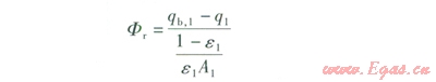 由4個灰體表面組成的有效輻射方程組見文獻[6—7],由有效輻射方程組得到室內與頂面的輻射換熱量Fr的計算式為:
