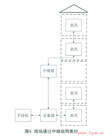 通過(guò)組網(wǎng)技術(shù),用遠(yuǎn)傳表或者中繼器來(lái)實(shí)現(xiàn)接力傳輸,從而擴(kuò)大抄表信息傳遞的覆蓋范同。