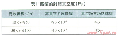 (2)設(shè)計文件應(yīng)對LNG儲罐提出明確的保冷指標要求。不論是真空粉末絕熱儲罐還是高真空多層絕熱儲罐對保冷都應(yīng)有明確的要求,即某體積的儲罐都應(yīng)對應(yīng)相應(yīng)的真空度和靜態(tài)蒸發(fā)率,超過這些數(shù)值指標就達不到保冷效果,蒸發(fā)氣體產(chǎn)生量就會增加,應(yīng)及時抽真空處理或采取其他措施。綜合相關(guān)規(guī)范和工程實踐,提出儲罐的保冷指標要求,儲罐的封結(jié)真空度指標要求見表1,靜態(tài)蒸發(fā)率指標(上限)要求見表2。