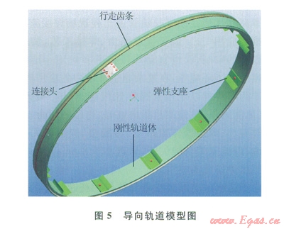 導向軌道采用分體式環(huán)形結構,軌道由2塊半圓弧軌道通過連接頭和鎖緊把手連接而成,其上設有齒條,以實現(xiàn)與齒輪的動力傳動(圖5)。
