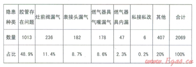 (3)東莞新奧2012年1—4月戶內(nèi)安全隱患類型分析,見(jiàn)表l: