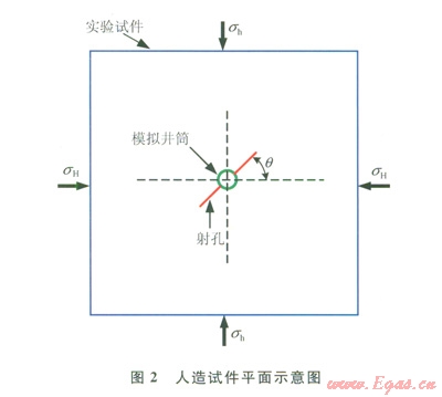 以上情況與定向射孔參數(shù)和目標(biāo)地層性質(zhì)(地應(yīng)狀態(tài)、地層非均勻性等)密切相關(guān)。然而目前對(duì)此問研究甚少。筆者采用大型真三軸水力壓裂物理模擬驗(yàn)系統(tǒng)[13]進(jìn)行了室內(nèi)物模實(shí)驗(yàn),研究了定向射孔水壓裂人工水力裂縫的形態(tài)和影響因素,并對(duì)完井和裂施工提出了一些工程建議。
