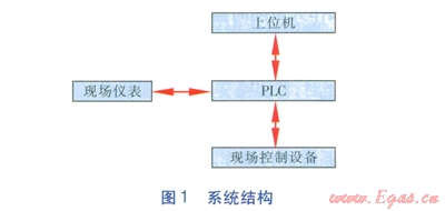 該系統(tǒng)中現(xiàn)場儀表及控制設備通過PLC通信將實時情況反饋給上位機,并在上位機顯示相關數(shù)據(jù)。上位機通過PLC通信將指令發(fā)送到現(xiàn)場控制設備,對其進行自動控制。