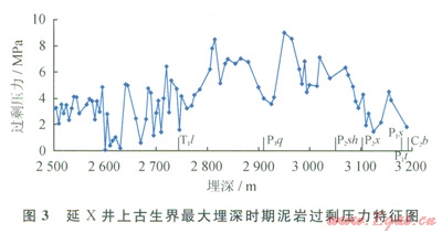 一般來說浮力和水動力是油氣二次運移的主要動力,在常規(guī)油氣二次運移過程中浮力和水動力作用較強。但在鄂爾多斯盆地上古生界由于儲層成巖早期壓實作用和膠結作用強烈,因而在造成儲層致密化的同時,也導致儲層中的自由水大為減少,從而難以產(chǎn)生較強的浮力和水動力[28]。另一方面,流體南高勢區(qū)向低勢區(qū)運移的原理只適用于連通的水力系統(tǒng),而不適用于多個封隔體之間。泥巖壓實研究表明,盆地上古生界地層在三疊紀末 白堊紀發(fā)育“非均衡壓實” [16-17,21,24,26],該區(qū)最大埋深時期(白堊紀)泥巖過剩壓力幅度介于0~10MPa,過剩壓力峰值出現(xiàn)在三疊系劉家溝組—上石盒子組(圖3),在壓力封存箱的上下、側向高壓泥巖阻隔之間,很難出現(xiàn)區(qū)域運移??梢姡鯛柖嗨古璧厣瞎派缛狈μ烊粴獯笠?guī)模、長距離運移的動力條件。