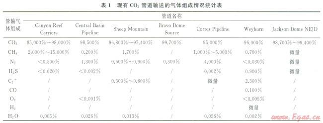 CO2管道輸送的混合氣體組成取決于它的來源。來自不同源頭的CO2流體接入管道設(shè)施中時,管道內(nèi)混合氣體組成會發(fā)生變化。不同的捕捉技術(shù)也會導(dǎo)致CO2混合氣體中產(chǎn)生不同的化合物,目前CO2輸送中這方面的經(jīng)驗較少。