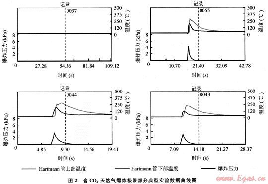 由圖2可知:當(dāng)實(shí)驗(yàn)氣體在Hartmann管內(nèi)發(fā)生爆炸時(shí),能檢測(cè)到管內(nèi)有明顯的壓力和溫度變化;如果未發(fā)生爆炸,則檢測(cè)不到明顯的壓力和溫度變化。