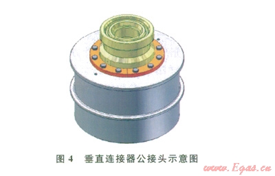 垂直連接器的公接頭一般安裝在管匯/采油樹上,母接頭裝在跨接管上、安裝時(shí)與公接頭對接(圖4、5)。水下連接器保護(hù)帽分為不承壓和承壓兩種形式(圖6、7)。不承壓保護(hù)帽對水下連接器的公接頭起到保護(hù)作用,也可隨著接頭安裝到水下,一般建議在水下的停留時(shí)間不超過42d。承壓保護(hù)帽可用于長期的公接頭保護(hù)(期限與公接頭使用壽命相同),根據(jù)密封形式的不同,也可用做隔斷使用,即橡膠密封的承壓保護(hù)帽可用作二級隔斷使用,金屬密封的承壓保護(hù)帽可用作一級隔斷使用。