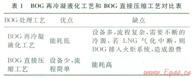 1 不同的BOG處理工藝對比