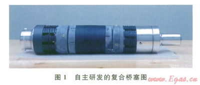 復(fù)合橋塞是實(shí)現(xiàn)水平井分段壓裂段間封隔的有效工具,復(fù)合橋塞具有作業(yè)效率高(一趟作業(yè)管柱完成射孔及坐封橋塞)、易鉆(通常30min以內(nèi))等特點(diǎn)。通過自主攻關(guān)研制出速鉆復(fù)合橋塞工具,能滿足頁巖氣水平井分段壓裂改造的需求(圖1),工具指標(biāo)為:①適用井眼尺寸有Æ114.3mm、Æl27.0mm、Æ139.7mm等套管完井;②耐溫,達(dá)150℃;③承受工作壓差為70MPa;④分段數(shù)不受井筒條件限制。