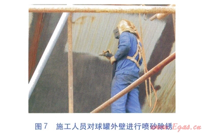 ⑦球罐外壁噴砂除銹及防腐