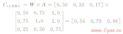 相應(yīng)的求得:C1財產(chǎn)損失=[0.40 0.65 0.90]