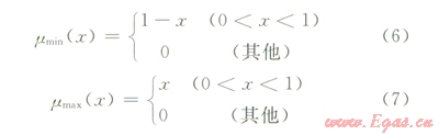 由于求得的結(jié)果事件都以模糊數(shù)表示,為了對比風(fēng)險的大小,需要將模糊數(shù)轉(zhuǎn)化為相應(yīng)的概率值,即FPS(Fuzzy Possibility Score)。在模糊集理論中,這個過程又叫解模糊化,這里是基于Chen和Hwang提出的模糊最大和最小集合方法[10]。該方法定義的最小及最大模糊集分別為: