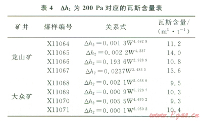 4)實驗室研究了瓦斯含量和鉆屑瓦斯解吸指標Ah。的關(guān)系,龍山礦無煙煤Dh2為200Pa對應(yīng)的瓦斯含量為10.8~14.0m3/t,最低為l0.8m3/t;大眾礦貧煤對應(yīng)的瓦斯含量為9.3~10.4m3/t,最低為9.3m3/t。