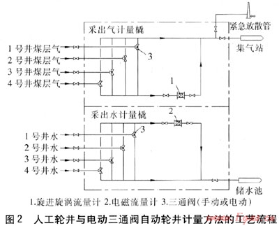 優(yōu)點(diǎn):利用電動(dòng)三通閥,可實(shí)現(xiàn)對(duì)各單井計(jì)量的自動(dòng)切換,減少了人工切換的工作量;任何一口單井發(fā)生故障,都不會(huì)影響到其他井的排采。缺點(diǎn):井?dāng)?shù)越多,可連續(xù)計(jì)量的時(shí)間越短;受供電系統(tǒng)影響較大,若供電系統(tǒng)發(fā)生故障,將無(wú)法實(shí)現(xiàn)自動(dòng)輪井計(jì)量;造價(jià)較高。造價(jià):采出氣計(jì)量橇約9.5×104元.采出水計(jì)量橇約8.3×104元。