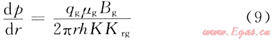 在模型所示的穩(wěn)定流過(guò)程中,基于達(dá)西定律的氣井徑向壓力降為: