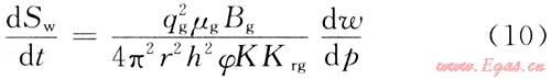由于氣井開始生產(chǎn)后,地層壓力下降,水相開始蒸發(fā),氣體中的含水量逐漸增加,在無(wú)邊底水的儲(chǔ)層中會(huì)造成地層含水飽和度的減小,因此有必要研究近井區(qū)含水飽和度的變化規(guī)律。