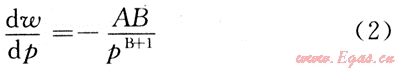 在氣井卸壓生產(chǎn)的過(guò)程中地層溫度基本恒定,影響天然氣中蒸汽含量變化的主要是壓力,當(dāng)不考慮溫度的影響時(shí),對(duì)式(1)求導(dǎo)得: