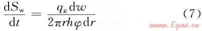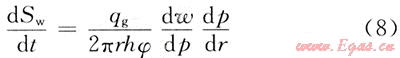 孔隙中地層水減小的體積量,應(yīng)該等于氣體中增加的蒸汽量,所以式(5)與式(6)相等,即