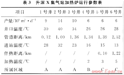 以升深X集氣站為例進行優(yōu)化前后投資對比分析。該站有6口井,采氣管道為7.851km,設計壓力均為29MPa,若采用井下節(jié)流技術,井口壓力降為7.0MPa,計算得到該集氣站加熱爐運行參數(shù)見表3。