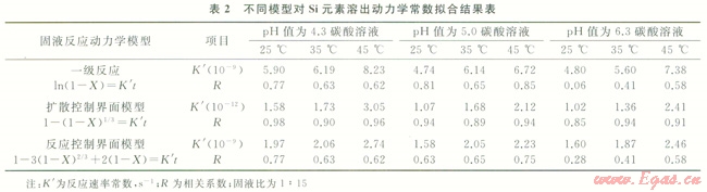 根據(jù)擴散控制界面模型擬合得出的不同溫度條件下(25℃、35℃、45℃)反應(yīng)速率常數(shù),見表3。