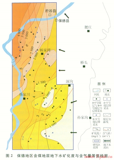 鄂爾多斯盆地東北緣保德地區(qū)是我國第一個投入開發(fā)的中低煤階煤層氣區(qū)。該區(qū)發(fā)育厚煤層,含氣量低 中等,具有解吸壓力高、含氣飽和度高的特點[1],對其水動力分布規(guī)律及其控氣作用還需要進一步認識。為此,筆者采集了大量煤層氣井產(chǎn)出水樣品,對其化學特征及變化規(guī)律進行分析,以揭示地下水的動力環(huán)境及其控氣作用,為該區(qū)的煤層氣勘探開發(fā)提供依據(jù)。