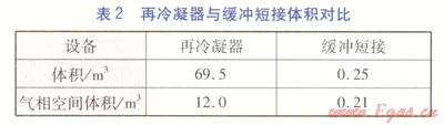 根據(jù)模擬結(jié)果,再冷凝器停運時,由于緩沖短接氣相空間較小,緩沖能力不足,所以水擊壓力較大。在設(shè)計再冷凝器或緩沖短接時,需要考慮水擊產(chǎn)生的影響,可以適當放大氣相空間。