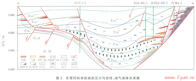東營(yíng)凹陷是中國(guó)東部富油氣凹陷之一,含油氣豐度高,探明儲(chǔ)量大,目前已發(fā)現(xiàn)的油氣主要分布于埋深小于3500m的地層。隨著近期深層勘探的不斷深入,在東營(yíng)凹陷北部陡坡帶的民豐、利津等地區(qū)發(fā)現(xiàn)了凝析氣藏和氣藏,實(shí)現(xiàn)了深層勘探的重大突破,展示了深層較好的油氣勘探前景。但是,油氣藏的地質(zhì)條件和流體壓力存在較大的差異,在古近紀(jì)的構(gòu)造演化過(guò)程中,兩地區(qū)存在沉降中心的轉(zhuǎn)換,導(dǎo)致沉積作用、生烴作用和油氣富集發(fā)生較大的變化,直接表現(xiàn)出深層凝析氣藏和氣藏的地層壓力既有常壓,也有超壓。