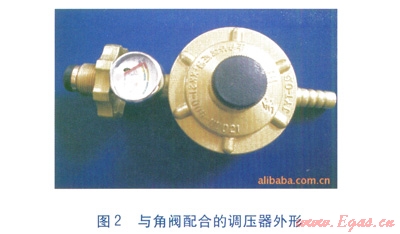 角閥帶有手輪,順時(shí)針轉(zhuǎn)動(dòng)可關(guān)閉角閥,角閥結(jié)構(gòu)見圖1,與角閥配合的調(diào)壓器外形見圖2。