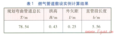 接著分別計(jì)算彎曲管道的拱高、彎管外矢距和彎管彎曲段間直管段長(zhǎng)度,并將計(jì)算結(jié)果列于表1。