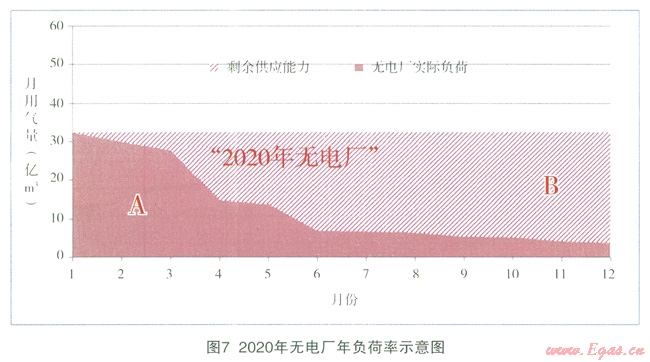 預(yù)計到2020年,“有電廠”的偏離度為0.34,“無電廠”為0.61,“有電廠”可以明顯縮小各月間用氣的不均勻性,使一年內(nèi)的負(fù)荷變化趨于平衡。